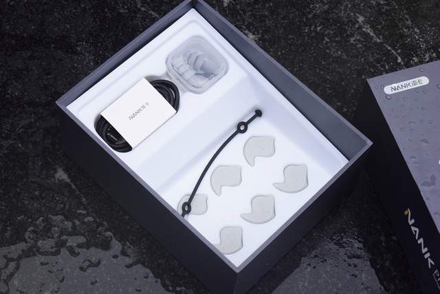 内里陈列一如以往,上层是耳机,下层是配件。内容物方面,Pro4S耳机本体、说明书、绑带、抗噪塞、充电线和官方称其为“音质增强器”的耳塞(S/M/L共计三对),当你身处户外比较嘈杂的环境下使用时可以根据耳廓大小选择合适的款式塞在里面,这样整个世界就会顿觉清静不少,听音乐/音频也会更有沉浸感,更清晰。不过一般跑步的话,大可不用。