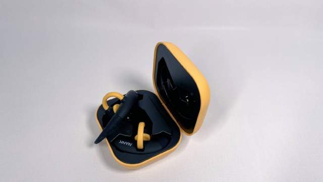 打开包装盒,NANK-OE的充电仓要比普通蓝牙耳机大上一圈,骨传导耳机也终于有属于自己的充电仓了。这款耳机一共有两个配色,机械黄和星光白,白色属于百搭款,无论是男生女生都能驾驭这款颜色。