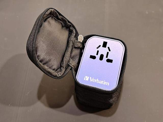 其中,纯黑的收纳袋上清晰印刷有“Verbatim”字样与品牌logo,而且其大小与威宝旅行转换快充插头十分适配,能够完全把整个转换快充插头收纳下,同时四周并不会带来任何过多多余空间存在。这样的收纳设计,在旅行外出时候,很好地对转换快充插头带来极致的收纳与保护。