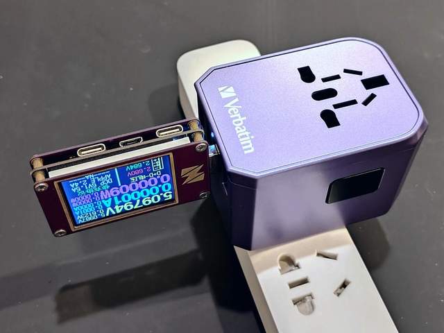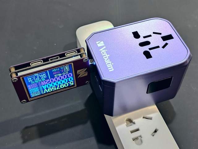 在通过来自yzxstudio出品的USB测试仪对威宝旅行转换快充插头1+4的USB接口进行简单的测试,可以发现无论是左侧侧面上的Type-C接口,还是底部位置上的4个USB-A接口,输出电压均为5.09V左右,整体输出十分稳定可靠,确保了数码设备的稳定充电使用。