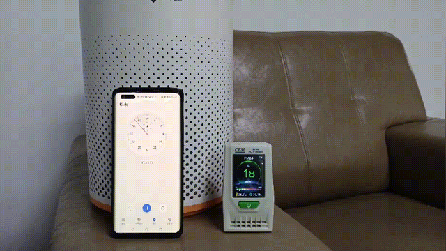 接着开启小白微微,仅用4分钟时间,房间中的PM2.5便被净化到了18微克/立方米了。