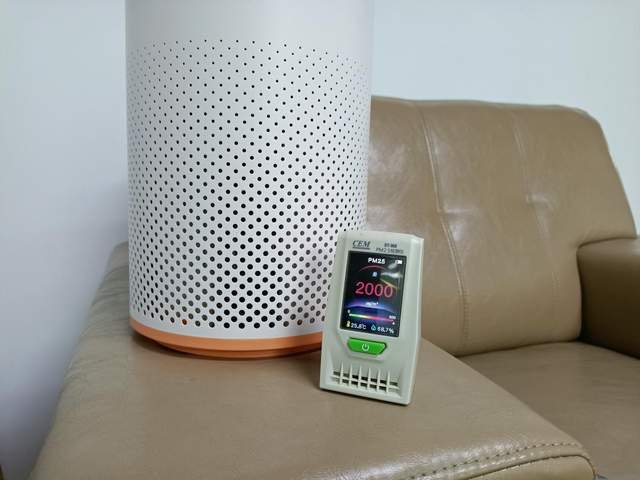 房间中燃烧烟雾,测得二手烟浓度很高,PM2.5高达2000微克/立方米。