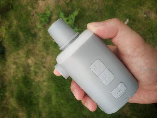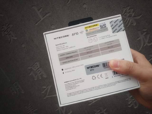 拿在手里,可以看出AP10的小巧,这也是我目前入手最小的充气装备,外壳边角R角处理,配上细磨砂,手触圆润,178克携带便利。