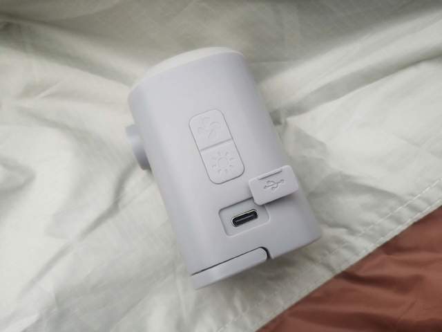 充气、照明的按键设置在一侧,下部是带胶盖的C口设计。在操作上充气、照明一键完成,逻辑清晰,不用单按键那种不断切换的繁琐操作方式。