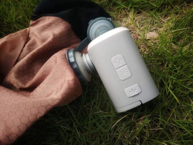 选择合适的接口后就可为装备充气。高压4.5kPa 300L/min让我在户外可以快速完成各类装备的充气。帐篷大约3分钟搞定。