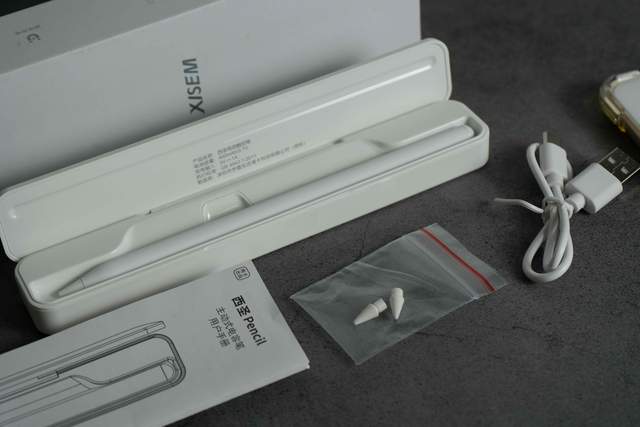 包装相当简单,厂家附送了 POM 可替换笔尖。与 Apple pencil 同样的笔尖材质,同样的书写体验,细腻耐磨,笔尖精准灵敏。能够精确感觉每个像素,满足不同的书写需求。