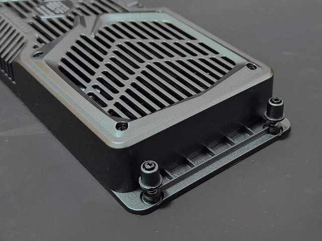 与此同时,在核心散热部分的四周固定脚上,红魔巧妙地加入了弹簧可伸缩的设计,完美解决了核心散热部分制冷面与不同品牌型号笔记本接触的问题,实现了由笔记本自身重量带来灵活的按压式贴合,更进一步提高笔记本底部与红魔笔记本散热器之间的热传递效率。