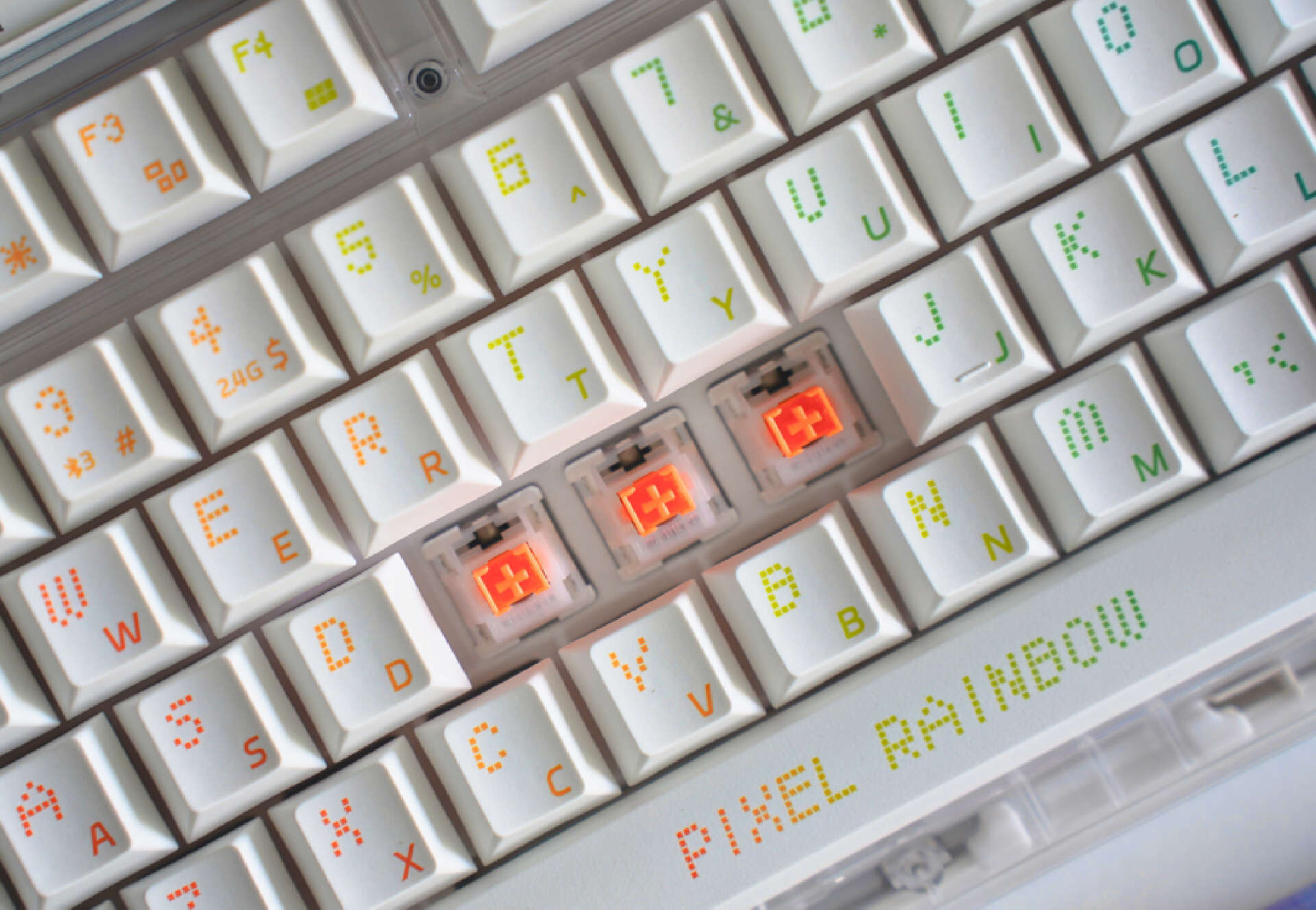 米物ART Z980 Pro机械键盘美如其名,将彩虹像素的基因刻在键盘的每个细节中。