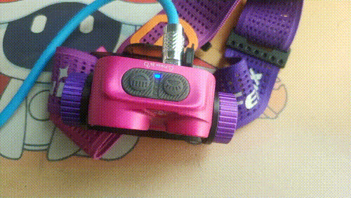 双按键的中央是指示灯的设置位置,开启的时候、充电的时候均有直观的电量指示,在赛事中我们就可根据电量做合理的使用规划。