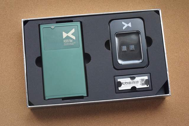 机身正面采用小开窗镜面的LOGO界面很漂亮。上方处带有麦克风孔,如有来电可直接语音通话,还是很方便的。XD05Bal CP版还重新优化了电路,整机指标更进一步。据了解,信噪比提升到了120dB,而谐波失真则低至0.00065%。