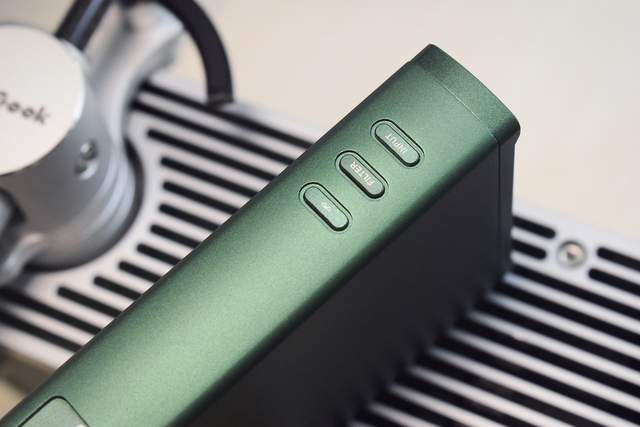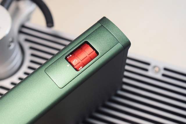 机身另侧内藏的红色音量调旋(4联平衡模拟电位器),与黛绿机身搭配可谓是相得益彰。相较于数字调节,物理调节音量对音质的损害更小,且不必担心误触爆音。调节时手感细腻无声,丝滑流畅。之前XD05 BAL所采用的就是该设计,CP版也自然延续了下来。