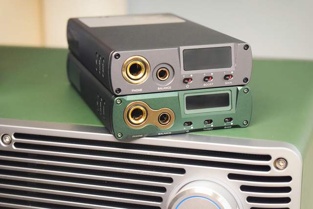 之前的拨杆开关被我吐槽太过修长突出,CP版这次特意做了改变,首尾两端的开关变得更短了,这样在外出使用时就不会被意外折断。新版配色放在桌面与各种数码设备搭配时也更显时尚。放上新老版两组对比,大家感受下:旁边的6.5mm单端/4.4mm平衡耳机双插孔则以镀金件连为一体,虽然只是细节上的改变,但整体观感上好了很多,更为协调。