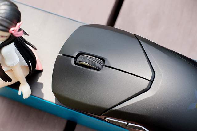 中间的滚轮采用的是电竞型的50万次刻度手感滚轮,具有镂空橡胶包裹防滑的纹路设计。