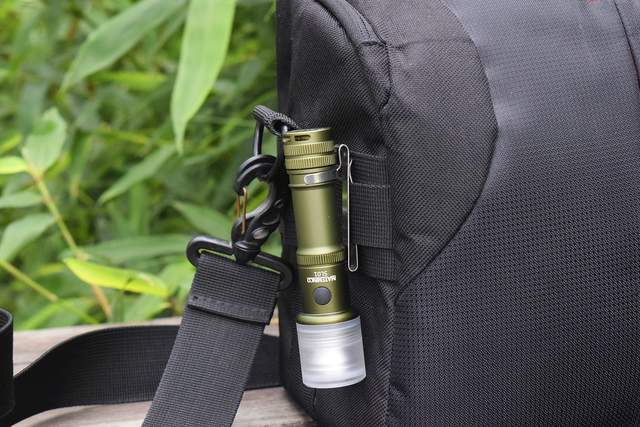 侧按为胶质(刚开始我还以为是金属,其实非也)微凸。短按开机,双击极亮,待机情况下,长按无极调光。双击爆闪,四击报电压。而主灯与副灯的切换则可以三击来实现。SL01带有档位智能记忆。下次开启时还是之前点亮的档位。