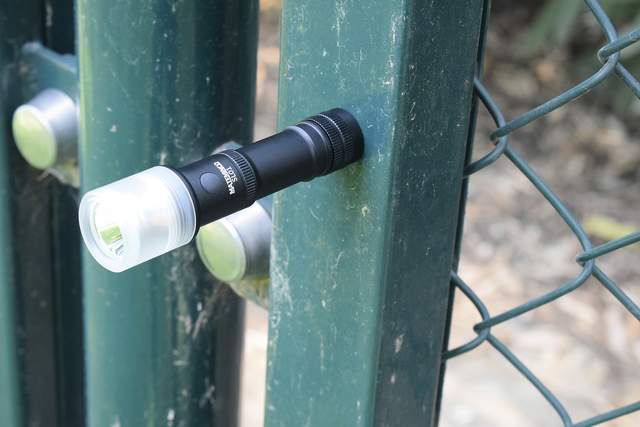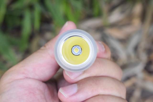 不过与其它手电不同的是,SL01的灯头很有意思,它套了层PC材质的外套灯罩,透光度还是非常Nice的,点亮后,光线不仅射向远方,还会向四周散射。