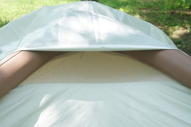 第二处细节,一宿一键自动充气帐篷ZT1-01采用的是双拉门设计,大多数传统帐篷将拉门打开之后,“门布”没办法整洁收纳,但是一宿却对这个痛点做出了优化设计,这点我是非常喜欢的。另外,我不知道你们有没有注意到前面照片中的一个小细节,那就是外账的“门布”我都有用风绳进行固定,不知道是不是巧合,总之那个尺寸刚刚好。