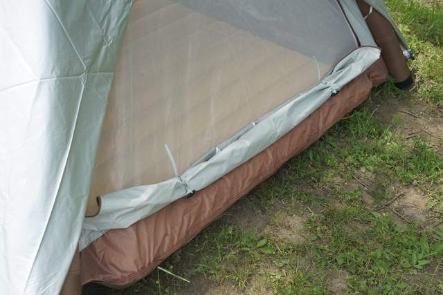 至于它的承重力表现,官方给出的参数是300kg,我做了一个单体105kg的测试,并没有出现塌陷的情况,如果带小朋友出来露营的话,他们在上面蹦蹦跳跳毫无问题。