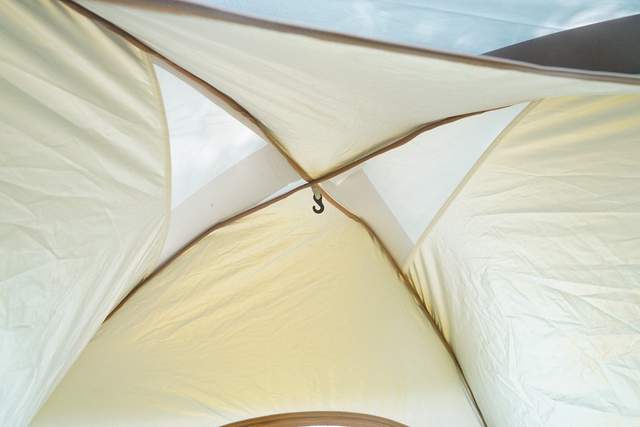 另外,内账顶部也设有透气防蚊纱帘,并且预留了一个挂置吊扇、照明灯用的挂钩,从这些人性化设计就能够看出,一宿在产品的细节掌控上下足了功夫。