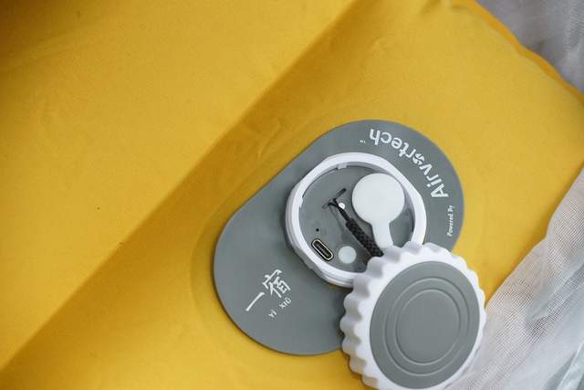 一宿一键自动充气睡垫PM2同样才用轻量化设计,并同样搭载了Aerogogo气泵,在实际应用时,我们需要打开进气口,即白色圆形盖帽,然后再点击Type-C充电口旁的白色开关按键,即可开始充气。在充气时,气泵会以5000RPM转速以及4kPa高压强进行充气工作,整个过程非常迅速。