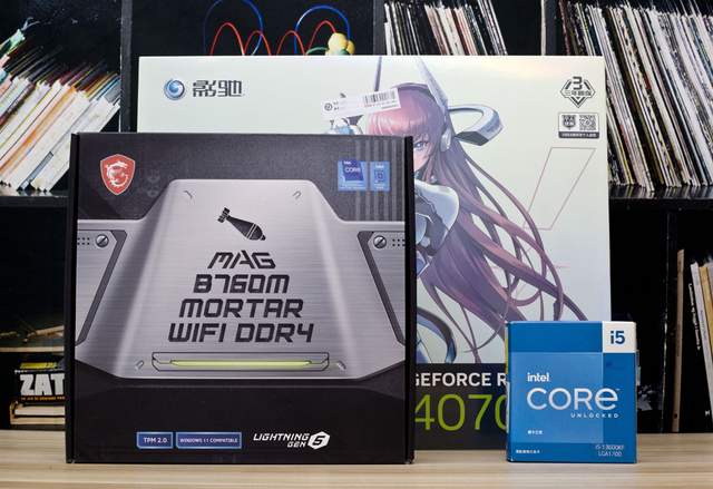 CPU入手的是13代i5 13600KF,与之相搭的是微星MAG B760M MORTAR WIFI DDR4,为什么没入D5版本,因为手上还有D4内存,就想省点预算了。而且6月份刚好套装价格也不错,就直接拿下了。而至于13600KF,相信大家也比较熟悉了,Intel 7工艺以及Raptor Cove架构,采用的是6个性能P核+8个能效E(14核20线程),基础频率为3.5GHz,最大睿频达5.1GHz,并搭配24MB的三级缓存,TDP为125W。加上影驰RTX 4070 星曜 OC,可以说这台机子绝对能成为强劲的生产力。