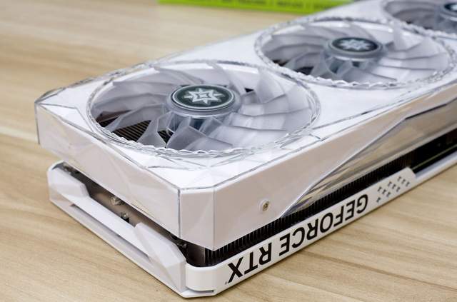 整卡依然以白色为主调,外面采用了水晶透明亚克力全覆盖式装甲,这个装甲是支持拆卸的,影驰官方也提到,用户拆卸这张显卡的上盖进行DIY涂装,并不会影响到质保。