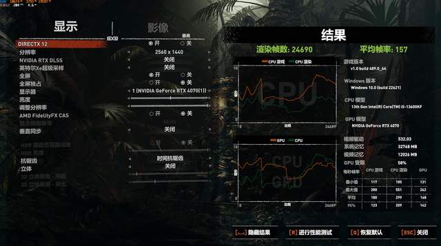 《古墓丽影:暗影》方面,再关闭dlss后,平均帧数位157。