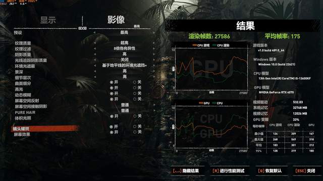 开启dlss后,画质同样使最高,帧数同样有了比较大的提升,来到了175帧。