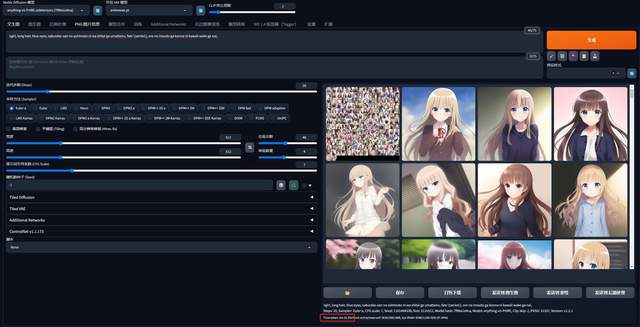 在输入1girl, long hair, blue eyes, sakurako-san no ashimoto ni wa shitai ga umatteiru, fate (series), ore no imouto ga konna ni kawaii wake ga nai等一系列的关键词后,设置总批次数为46,单批数量为4的情况下,显卡生产耗时为3分52.35秒,速度可以说相当快。