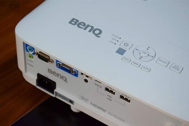 在连接方面,明基E540支持2.4G/5G双频WiFi和蓝牙4.1等无线连接。机身后部的接口还可以连接更多外部设备,包括音频输入输出、RS232、PC-VGA、HDMI、USB接口。