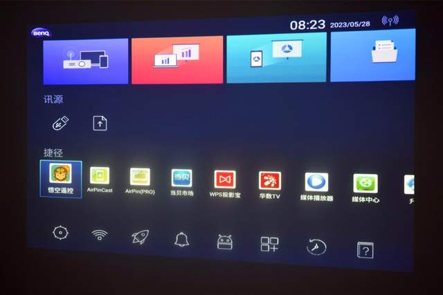 作为专业商用投影机,明基E540搭载了专为商务场景设计的智能系统及UI,所有功能页面都用了简洁易懂的图标,操作简单,小白都能秒上手,没有学习成本。