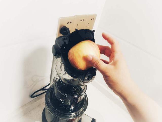 一个没有切的大苹果就这样轻轻松松的完成榨汁。