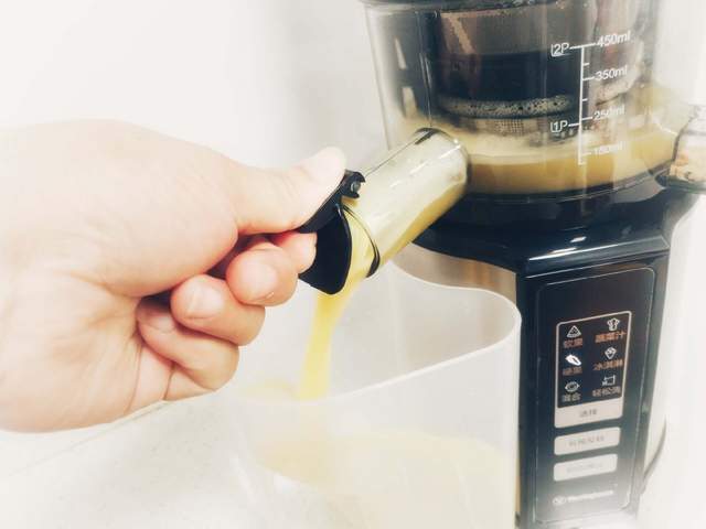 出渣口内的果渣也能自动排出,这也为使用、清理带来便利。而果渣收集后吃一口,口感极为细腻。这也是榨汁高效、细腻榨汁的体现。