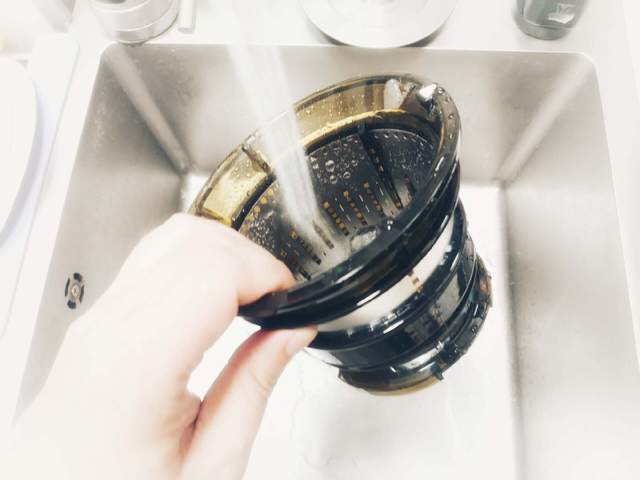清洗方面有专门配备的清洁刷,可以用来清理堆积在滤孔的残渣,省去了挺多麻烦。其他各组件可直拆开、分离后可直接在水龙头下冲净。没有传统榨汁机用手到网孔、角落处抠果渣的体验。还有就是因为杯身口径大,清洗的时候可伸手直接擦洗,不会再有清洗死角。
