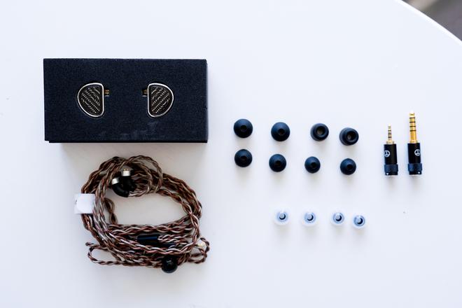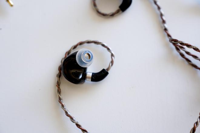 而且透明树脂融合在一起,声学结构清晰可见,而且通过空洞能直接看到的两颗动圈发声单元,别致的光学美感给人一种惊艳的感觉。在细节方面也都基本是按照定制公模耳机来设计的,整体设计、外观和感觉都相当精致和优质,采用符合人体工程学的形状,设计舒适。