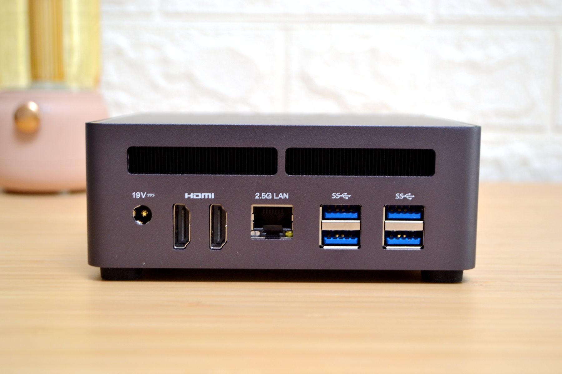 背部的接口,也非常丰富,铭凡UM790 Pro一共配备了一颗电源插孔、2个HDMI2.1、一个2.5G的RJ45网口以及4个USB-A3.2 Gen2(10Gbps)接口。两个HDMI2.1接口可以外接两台显示器,加上前面的两颗USB4接口,也就意味着,可以同时外接4台显示器,足可以满足多屏用户的使用需求。