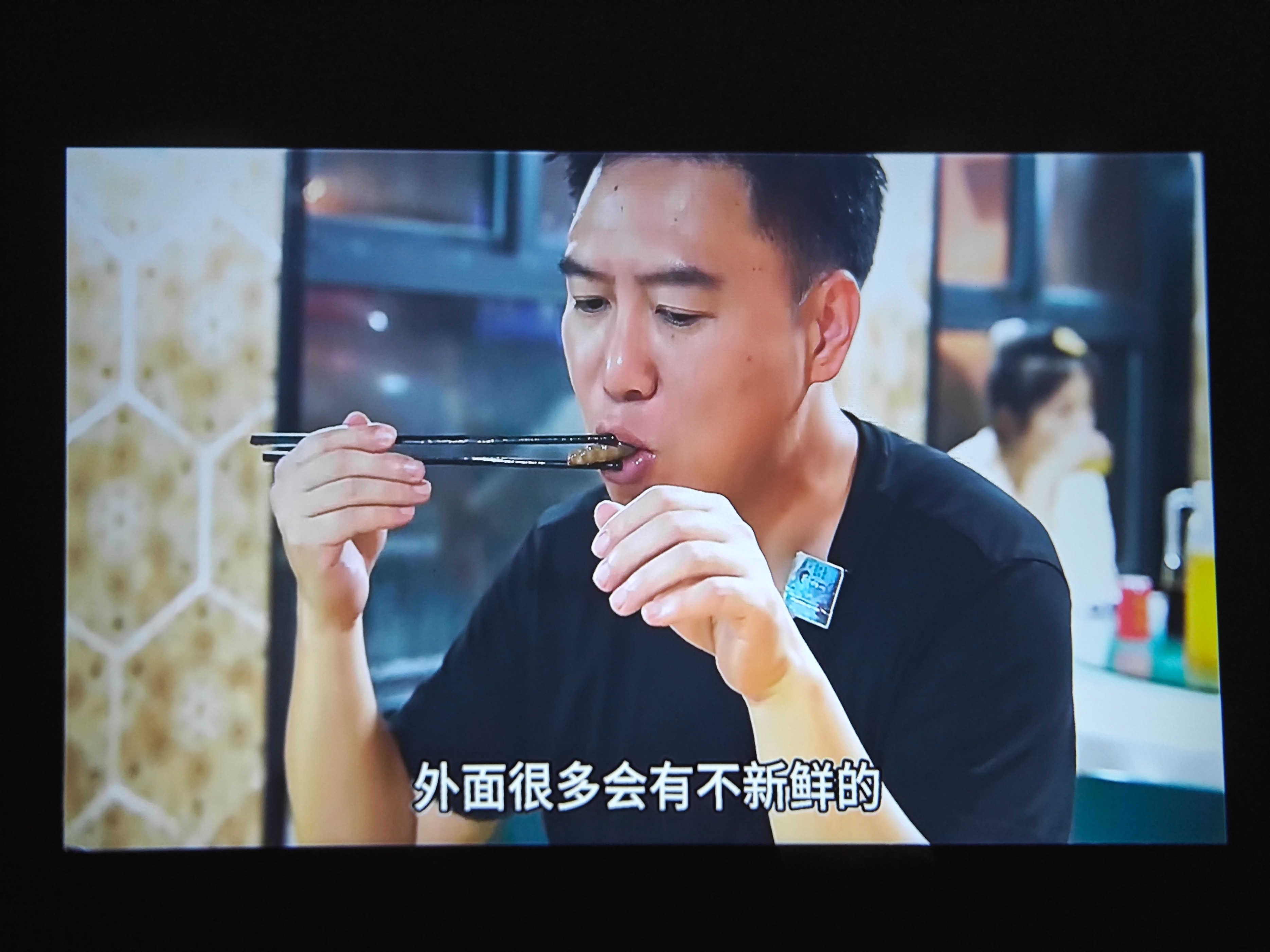 ▲因为我家没有幕布,只能投影在墙上,所以我给大家上几张图,来看看白天环境下的画面整体表现,我个人认为在白天场景下,亮度依旧很高,画面也很清晰,像我所播放的影片,可以看出色彩饱和度很高,而且明暗有层色感,不过还是建议各位白天使用的时候可以稍微拉下窗帘。