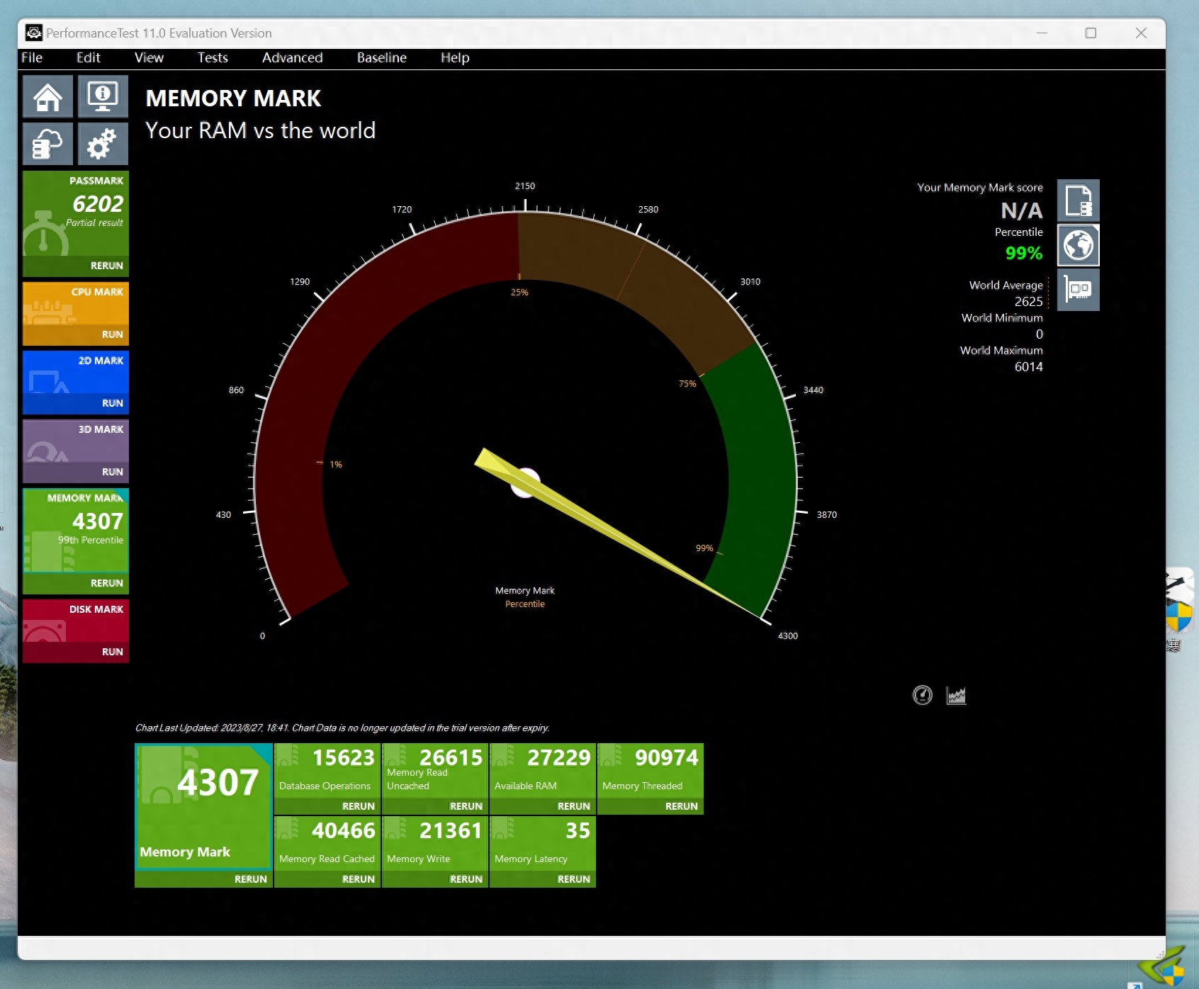 使用Performance Test,总分4307,比起么有启用低延迟高带宽之前你的3929,提升了336分。