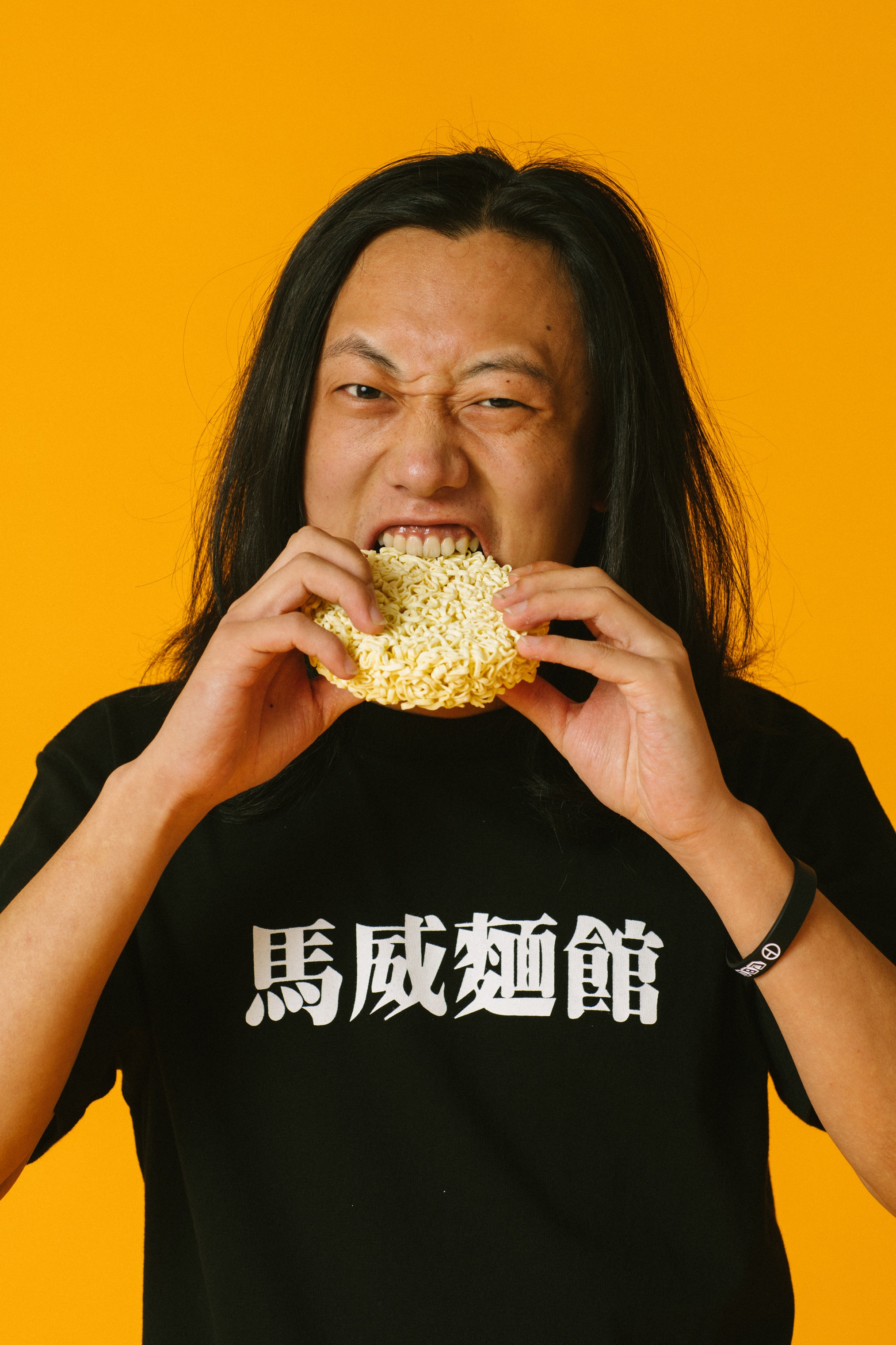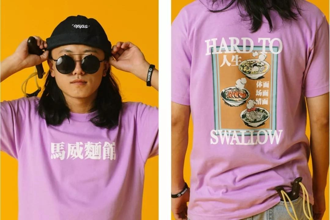 1.Maverick 吃面短袖以近年流行的“Chavs”形象结合老上海匪帮元素呈现,设计灵感来源杜月笙及其“三碗面”经典语录,紫色的配色骚气十足,欢迎大家来马威面馆“吃面”!