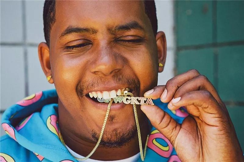 5.和GOLF WANG同出一脉的Odd Future,标志性的甜甜圈Logo项链,在千篇一律的Gold Chains中十分醒目,太饿的时候咬一口吧,不过小心你的牙。