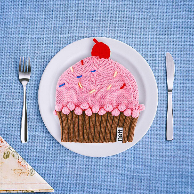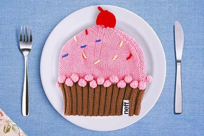4.想吃蛋糕了?其实这是一顶毛线冷帽,色彩十分丰富,看着也很真实,将纸杯蛋糕顶在头顶,潮人中的吃货无疑了。