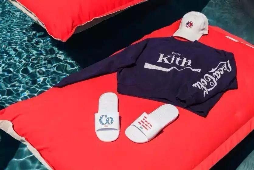 7.受够了千篇一律的钩子拖?Kith 与不务正业的可口可乐的带来的拖鞋值得一试,采用了美国星条旗元素,将Coke和Kith的Logo分别用辨识度极高的美国配色呈现,看着就十分清凉。