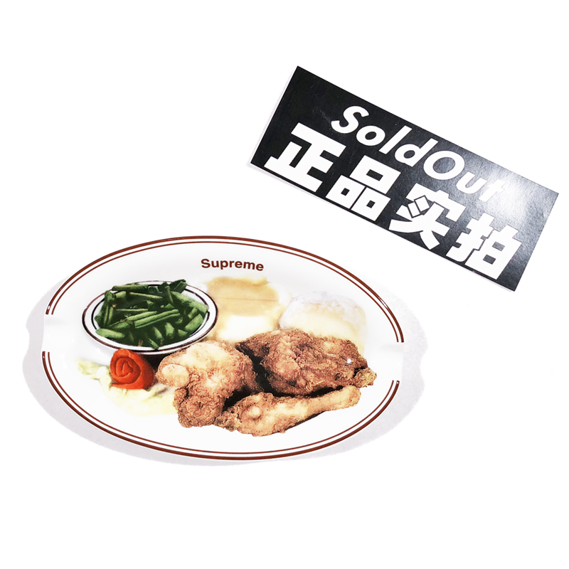 2.Supreme在今开季发售中,人气极高的一个元素,被粉丝称作“吃鸡”,3D的炸鸡让人看着十分有食欲,搭配辨识度极高的Supreme 文字印花,虽然是烟灰缸,但是却有更多的用途。大吉大利,今晚吃鸡!
