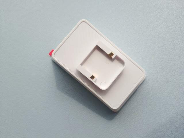 这个组件可与鼠标充电仓盖替换,让鼠标成可无线充电的产品。 拿下可以看到触点采用了镀金工艺处理,具有高效能电路系统的同时还有防腐蚀的效果。另外整个鼠标的放置面可以看到是有防滑纹理的设计,实现了鼠标稳定充电的效果。