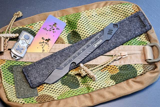 它的造型基本沿袭了二代的设计,但在其基础上加入了更多的“想法”。容我娓娓道来,逐一揭晓吧,首先随机配套附赠的毛毡收纳套就很有特色,收纳其中可保护表面不会刮花(不过费戈家的钛尺完全不必担心,但因末尾加入的撬棍太过尖锋,所以平时不用最好还是收纳为好)。