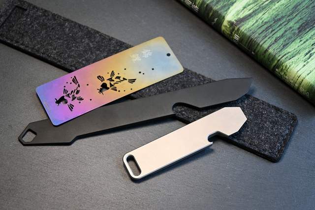 看完了破锋撬棍钛尺,我们再来看下喜欢读书的朋友要经常用到的书签。我素喜阅读,不仅经常买书,书签也屯了不少。常见的书签有随机附送的纸制,也有如今流行的金属书签和可自行DIY的叶脉书签。不过钛合金书签倒并不多见。