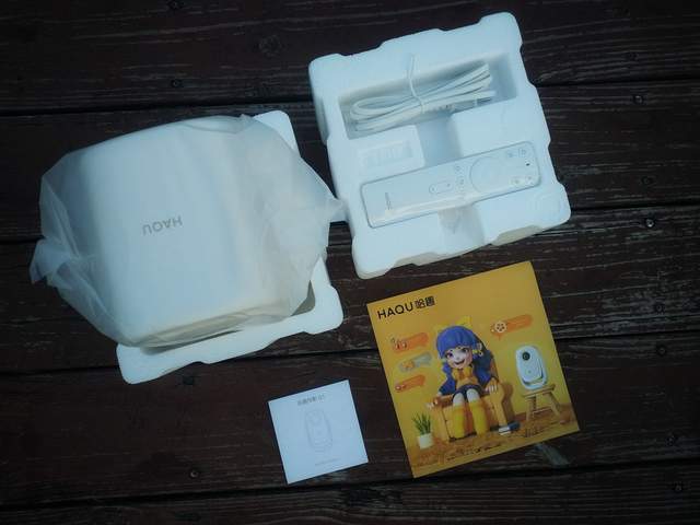 从包装的外壳就可发现这款产品是有趣、好玩的。打开外盒,可以看到投影仪有泡沫壳的收纳固定,避免在暴力快递时受到伤害,塑封袋包裹让我在阴雨不断的天气里收快递也不用担心受潮。就这些细节看品牌方式具有细致用心的。