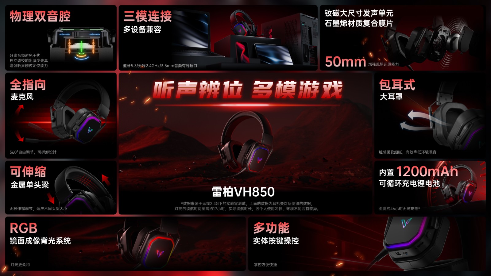 首页 >识物 >文章 >兼容端游手游,雷柏VH850游戏耳机,三模双音腔听你指令