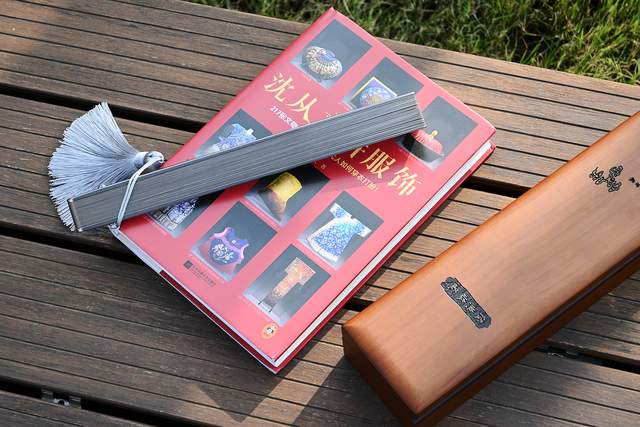折扇的包装为表面经圆润打磨过的胡桃木收纳盒,其上刻有篆写的铭牌,端的是雅致大方。而顶盖磁吸+内里绒面的设计既方便开启,也能很好的保护内容物。相较于之前过于方正的棱角,显然要改良不少,也更利于收藏盛列。