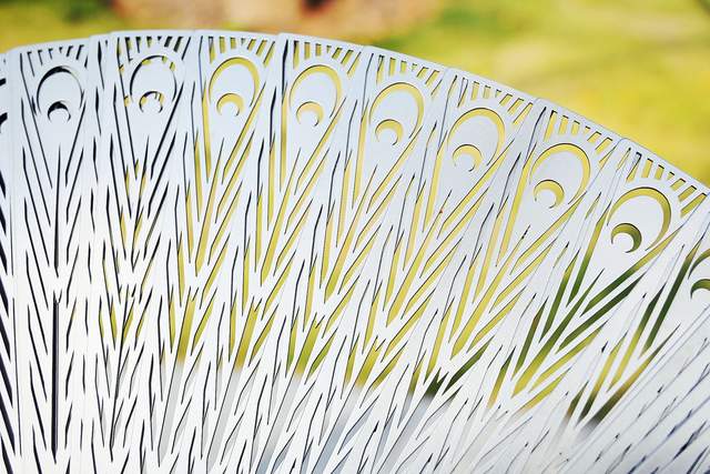 在去年,费戈曾推出过一款“龙鳞”全钛扇,镂刻的银白亮甲在阳光洒射下英姿勃发。而今年的上新的“凤羽”正好与之对应,也算是龙凤呈祥了。当扇面展开时,尤如凤凰展翅、孔雀开屏。尤其是当你一身劲装打扮,手持着它会更有大侠那范儿了。