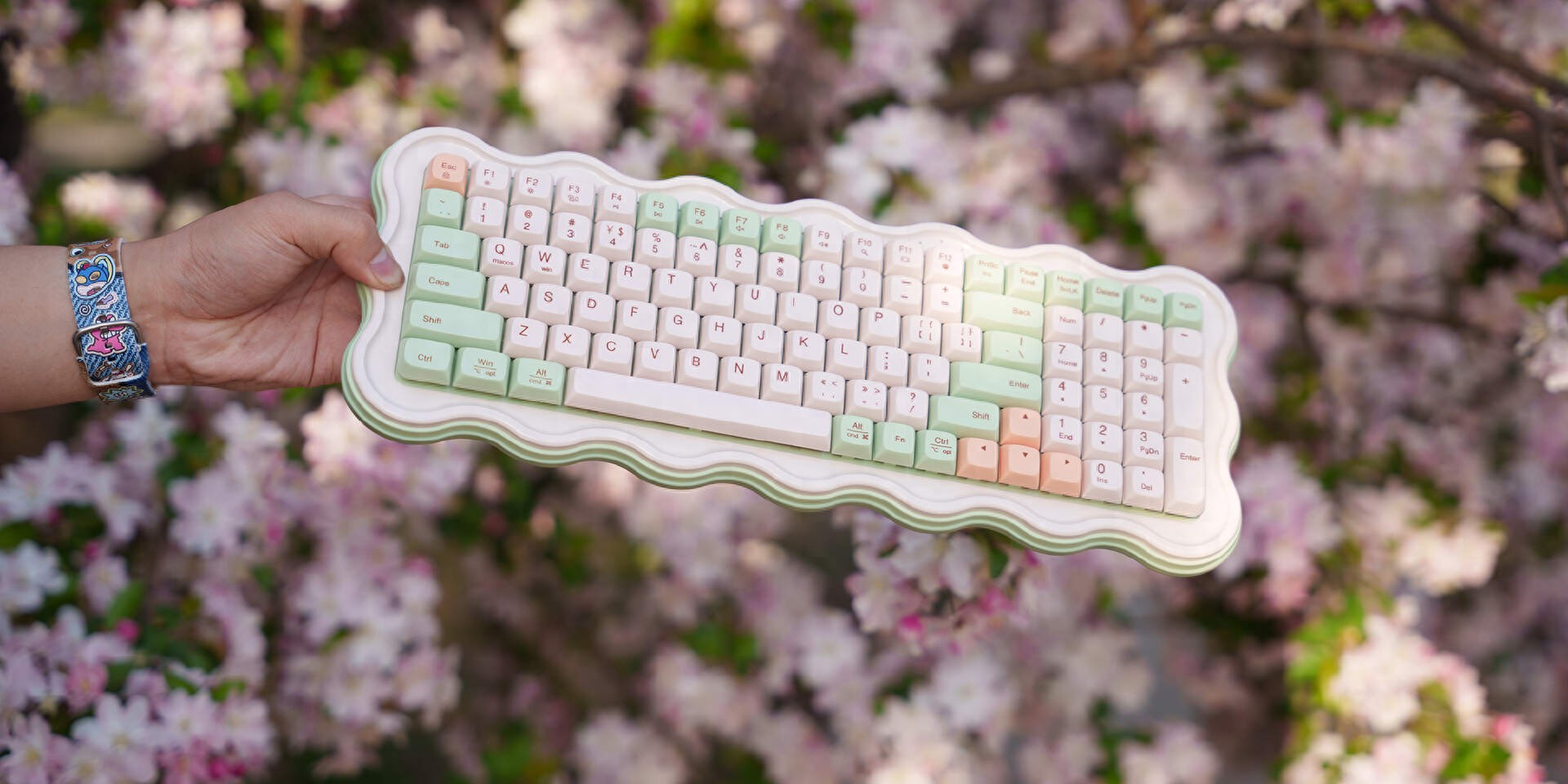 抹茶夹心配色,在这个花开的季节真的是非常应景,全尺寸的键盘也比较适合打工人,紧凑的设计也更适合在不大的办公台上使用和外出携带。